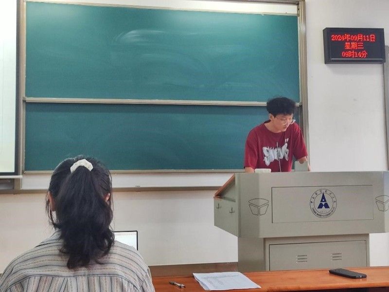 在第四个部分,市营2202班的学委李栋同学结合学生资助管理中心发布的通知,具体给大家介绍了本科生奖励评选体系,解答了最近同学们在申报奖学金时遇到的一些问题,他也对精准资助重点工作作出了提醒。在介绍完奖学金和助学金的评选体系之后,他分析了市营2201班2023~2024大二学年的成绩,指出市营2201班的同学在高分段位表现优秀,绝大部分同学取得了显著进步,鼓励大家再接再厉,也对大二下挂科缺考缓考情况做了分析。他也温馨提示大家结合考试实际情况思考改进方向,明确下半年学期目标。祝愿大家能在最后的两年里找到适合自己的方向,实现自己的心愿。紧接着市营2201班的学委钱莹飞同学给大家分析了市营2202班的成绩,也向大家介绍了有关推免工作的一些新变动,提醒有需求的同学参加口语考试。