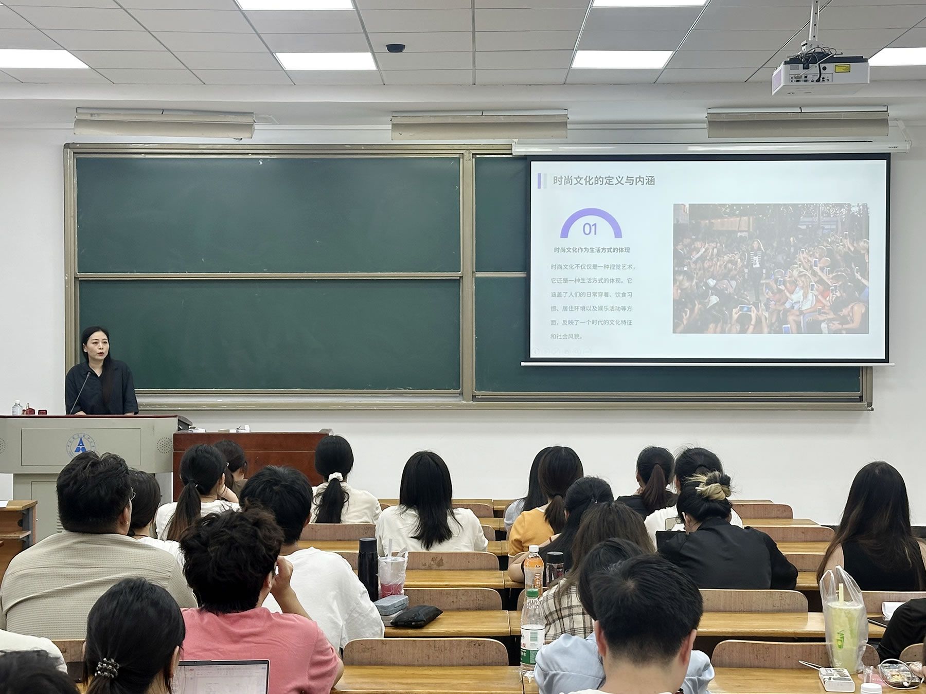 历史长河回溯源,名家荟萃悟多元。余教授先追根溯源简要介绍了时尚文化的定义、产业构成和文化特征,着眼于千禧年以来秀场模特的潮流变化,愈发融合时代的创新性。与数字化息息相关的时尚文化,也因互联网的飞速发展、劳动力价格等现实因素衍生出了“超快时尚”。并且,余教授从美学风格角度出发,列举了三大著名设计师各自的突出作品,涵盖实用精神、怪诞等元素,新奇且寓意非凡的服饰作品拓宽了同学们的视野。