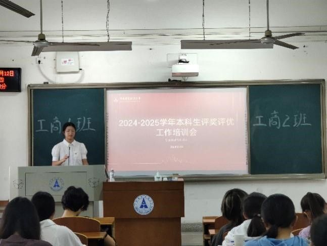 学情分析完成后,工商2201班周佳同学对本科生奖学金评奖评优工作进行了介绍,为大家详尽地整理了奖学金种类、信息填报时间线、申请注意事项等内容,让同学们了解本科生奖学金评奖评优工作的具体操作流程及事项。