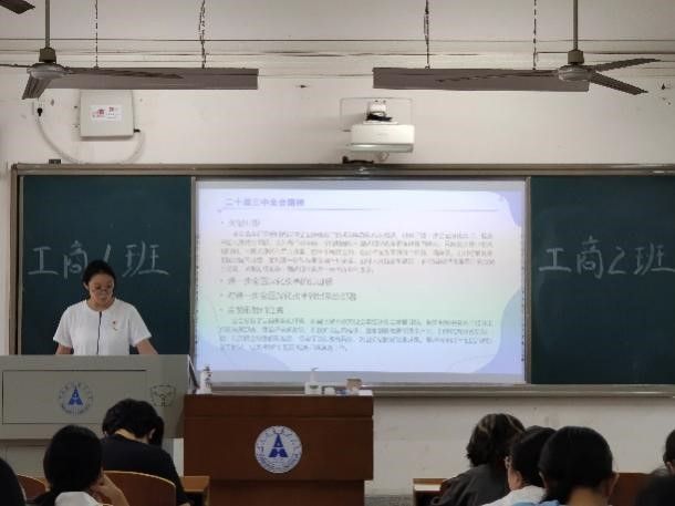 紧接着,工商2201班团支书陆宇涵带领同学们进行了理论学习,深入全面地介绍了二十届三中全会精神和二十届三中全会精深精要。随后,她采用视频形式让大家深刻地感受到中国75年来的变化,鼓励同学们在日常生活中积极作为,为中华民族伟大复兴贡献自己的青年力量!