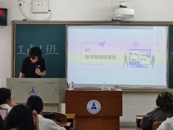 首先,工商2201班班长曹一铭向同学们梳理了奖学金申请、困难补助申请和学年鉴定注意事项等,确保每位同学了解这些新学期重要事务,推进后续工作地有序开展。
