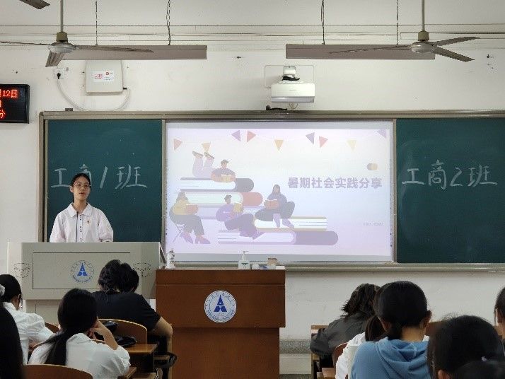 新学期班级事务梳理完成后,同学们对自己的暑假社会实践进行了分享。工商2201班张诗彤同学向大家介绍了自己在中泰证券实习的工作内容及感受,强调工作过程中办公软件的重要性,并建议各位同学积极参与实习,针对性地培养自己的综合能力。