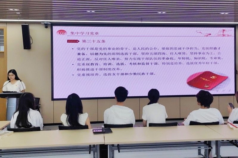 党日活动在重温入党誓词中拉开帷幕。全体成员举起右拳,铿锵有力的话语表达出对党的忠诚和为共产主义事业奋斗终身的决心。随后,工商学院彭永慧同学带领大家集中学习党章,通过原原本本、逐章逐条地对照学习,加深了支部同学们对党章理论内涵和精神实质的理解。