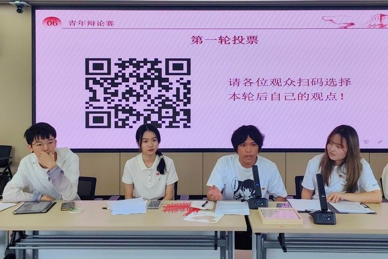 最后,支部“青年辩论赛”火热开启,为同学们搭建起展示才华、交锋思想的舞台。我院本科生2022级党支部的成员代表与经济学院本科生党支部的代表组成了辩论正反方两队,就“万事开头难”还是“万事中间难”这一辩题进行一场友谊赛。选手们运用丰富的知识和敏锐的思维,围绕己方观点的内涵与外延抽丝剥茧,并紧密结合大学生的生活,宣扬主旋律,提出独到见解。
