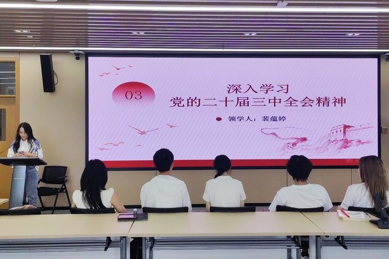 在理论学习环节,经济学院裴蕴婷同学带领大家学习党的二十届三中全会精神,让支部同学们认识到党的二十届三中全会的重大政治意义、理论意义、实践意义,深入学习党的二十届三中全会关于全面深化改革的新思想、新观点、新论断,切实增强新时代青年全面深化改革的政治责任感和历史使命感。