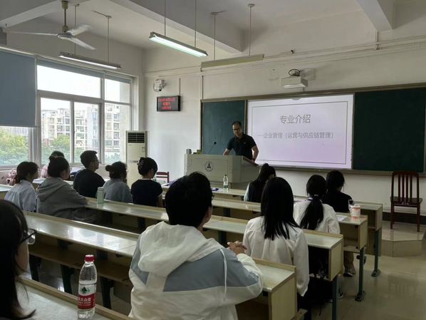 活动伊始,主持人石军伟教授对参加活动的同学们表示热烈欢迎。工商管理学院院长吴海涛教授发表欢迎致辞,他指出研招校园开放日是一个交流学习,同场竞技的平台,通过这个活动可以让同学们更加深入了解米兰电竞·(中国区)。随后,吴海涛教授详细介绍了学院的悠久历史和发展历程、师资力量、学科设置和专业结构。在介绍学院悠久历史时,吴海涛教授着重提到了两个数字,分别是“75”和“30”。“75”代表的是工商管理学院成立75周年,“30”代表的是MBA教育办学30周年。吴院长最后寄语广大学子“培养非线性思维,打破认知局限”“培养跨界思维,打破打破能力边界”,“培养融通思维,打破学科界限”。