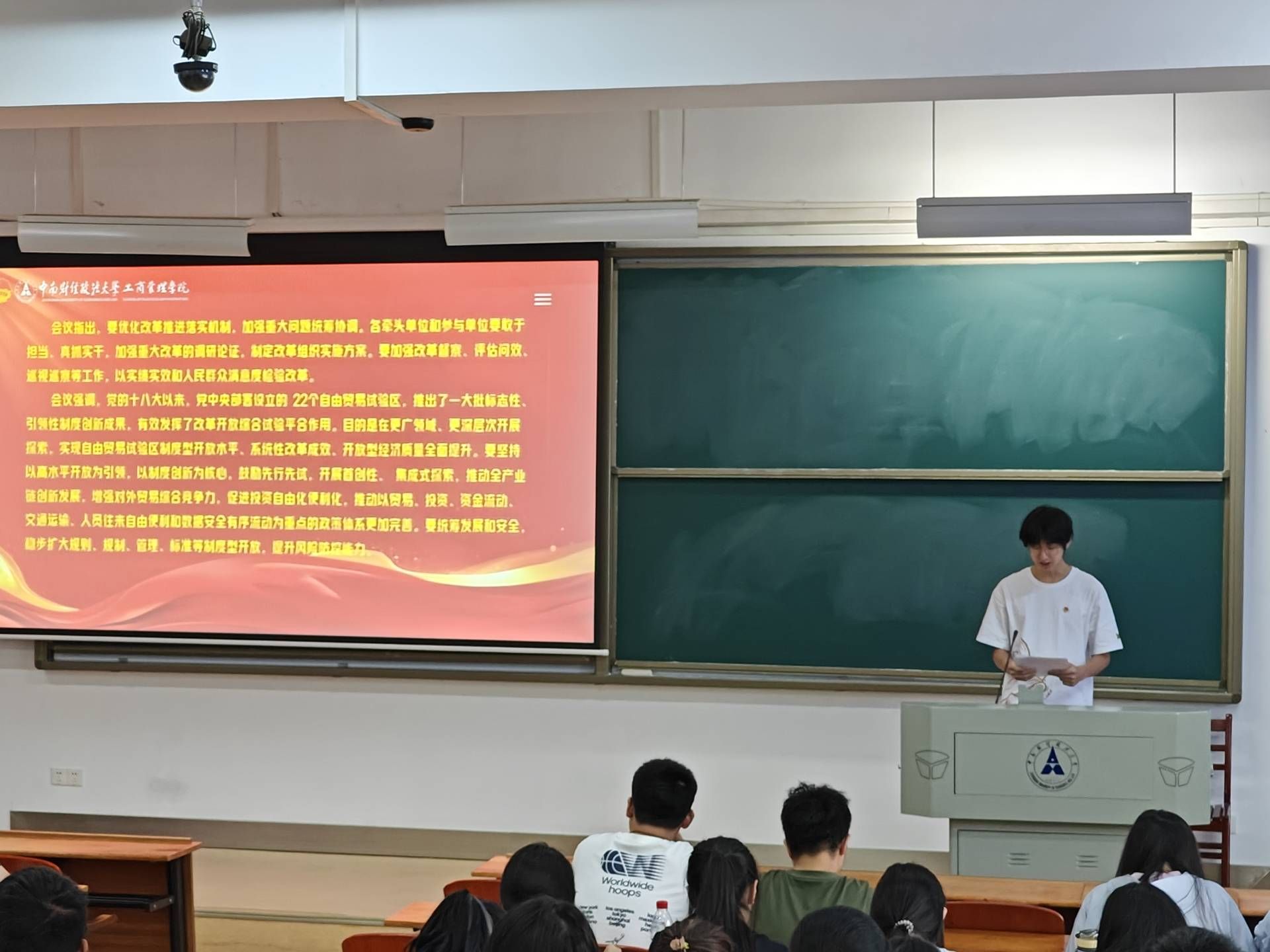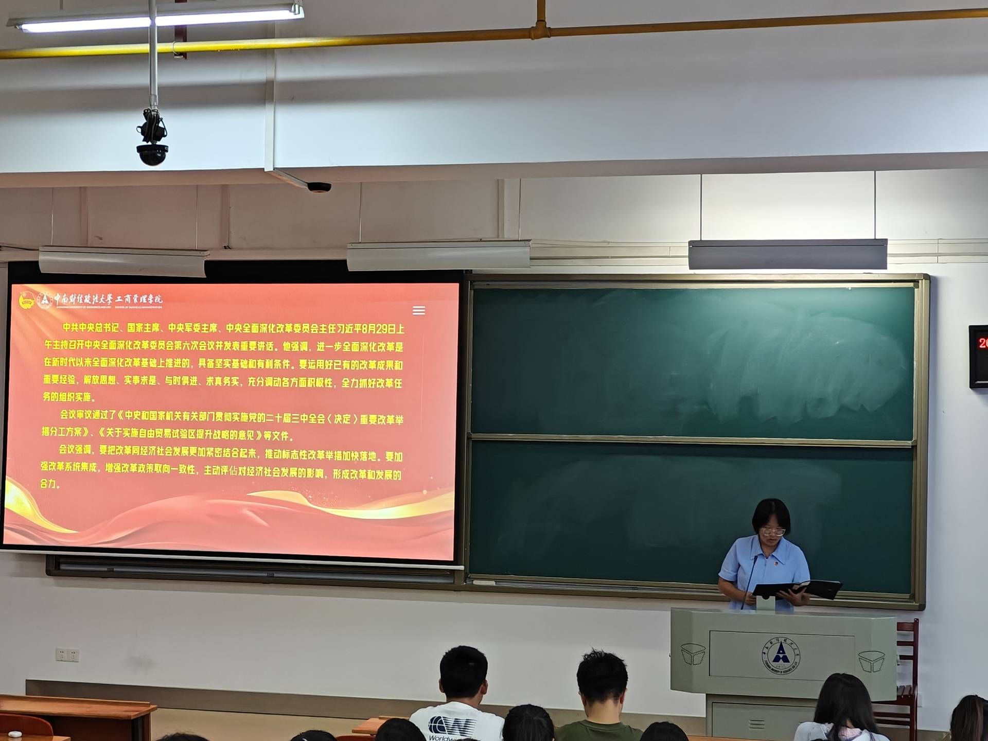 【通讯员:丁靖沣】9月12日上午,工商管理学院本科生2023级党支部在南附楼202教室召开“学习贯彻党的二十届三中全会精神,为进一步全面深化改革凝心聚力”9月主题党日活动。工商管理学院本科2023级党支部全体同学共同参与,何强老师、徐若冰老师出席本次活动。