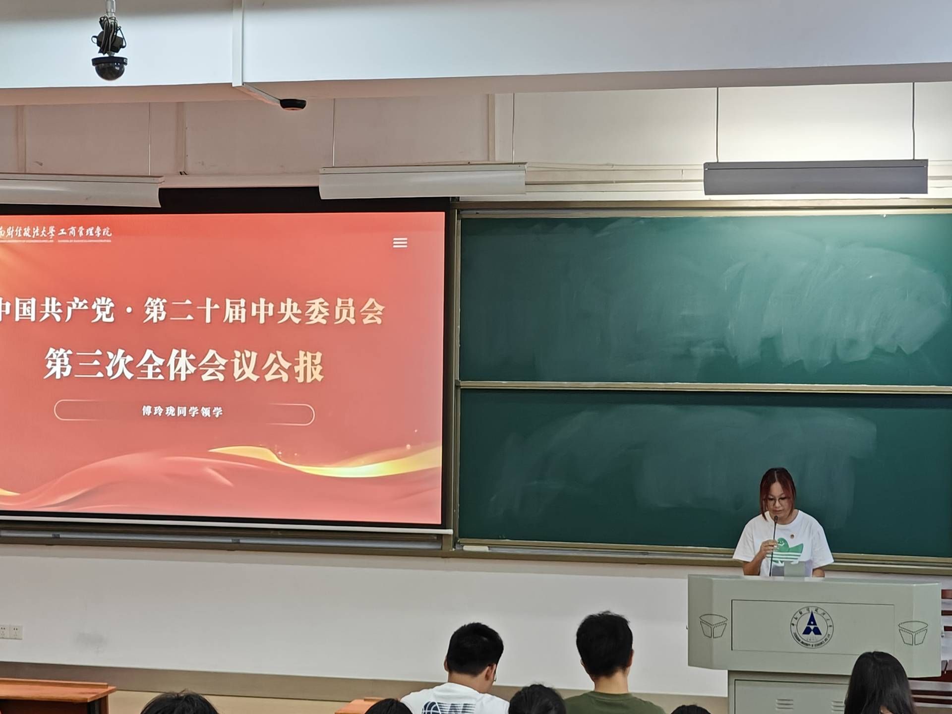 大会第三项,傅玲珑同学领学中国共产党第二十届中央委员会第三次全体会议公报,明确了当前和今后一个时期是以中国式现代化全面推进强国建设、民族复兴伟业的关键时期。.