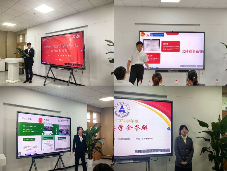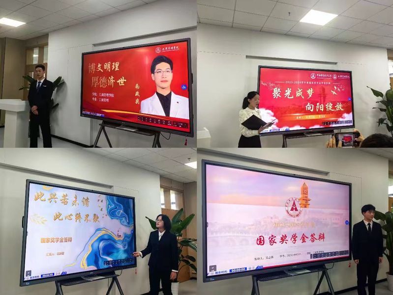 工商管理学院秉承公平、公正、公开的原则,从德、智、体、美、劳多方面对学生进行全方位评审产生国家奖学金获得者。本次答辩会主要分为个人答辩和最终评分两个环节。在个人答辩环节中,杜国瑜、张依鑫、徐玥、南政奕、冯元煦、秦紫珍、沈妍劭、聂羽辰、梁佳依、吴志强、李晴萱10名同学通过PPT演讲的形式,分别从个人成绩、思想情况、科研创新、学术竞赛、社会工作等方面进行答辩展示。在激情的逐梦之路上,在辉煌的荣誉篇章里,她们以一张张证书、一项项称号、一次次成果镌刻了坚实的印迹,向在场师生展现了新时代商科学子脚踏实地践行“博文明理 厚德济世”校训的精神风貌,让青春绽放出最为饱满的色彩。