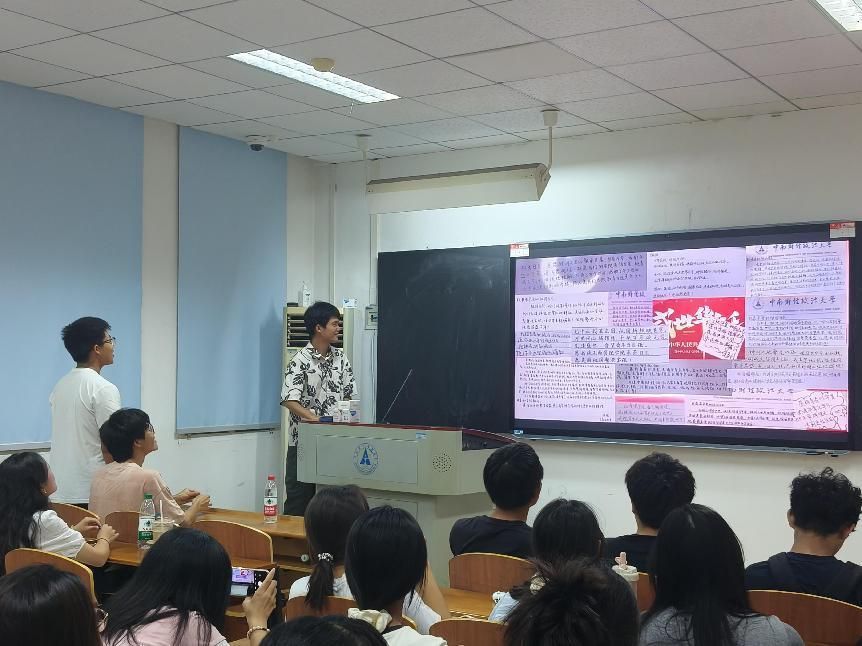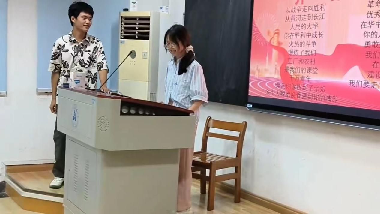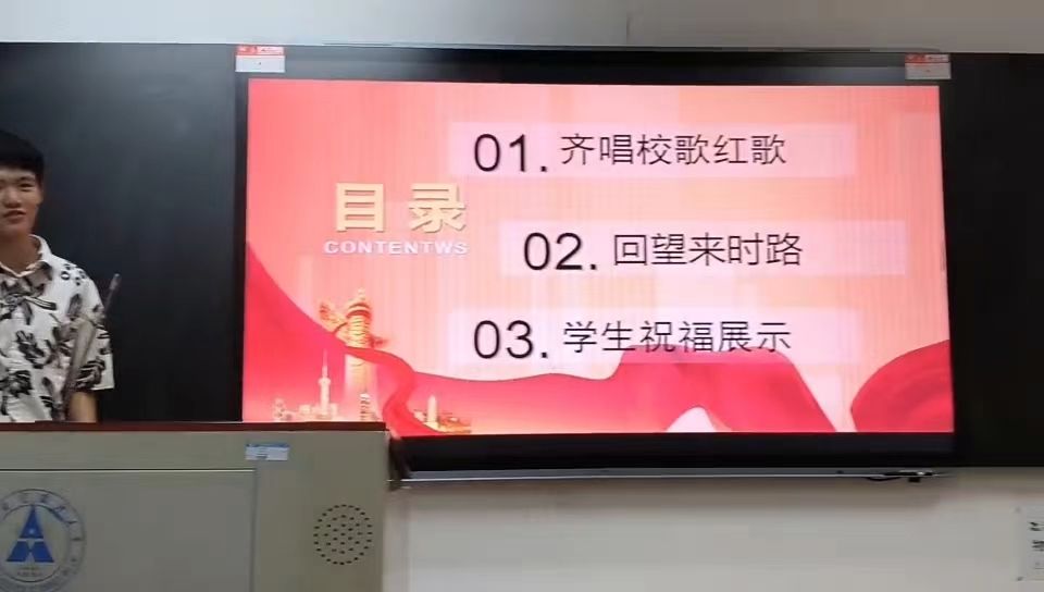 接着,团支书伍相睿通过展示生动的历史图片和视频资料,带领同学们回顾中华人民共和国成立七十五周年以来发生的几件大事,从开国大典到改革开放,从全面小康到同心抗疫,回顾了新中国从成立之初的艰难困苦到今日繁荣昌盛的辉煌蜕变。