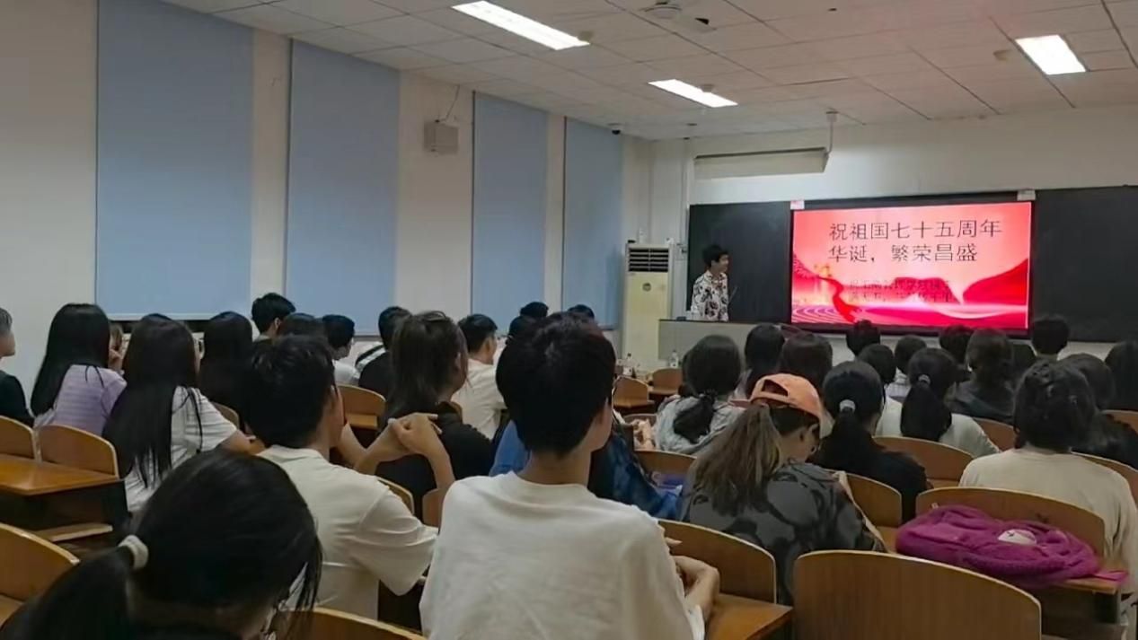 2024年9月26日晚,工商管理学院2408班在文润楼203教室,成功举办了以“七十五载逢盛世,同心共筑谱华章”为主题的团日活动。增强同学们的爱国情怀,激发他们的历史责任感与使命感。全体同学积极参与,共同庆祝中华人民共和国成立75周年,迎接工商管理学院75周年院庆。本次团课由团支书伍相睿主持。