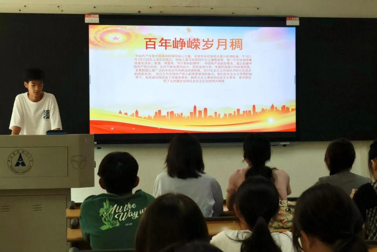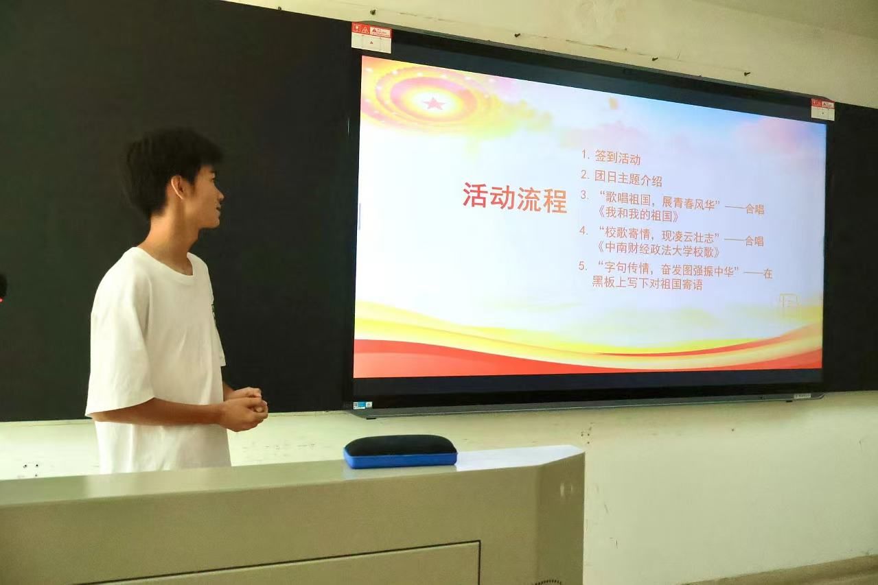在“团日主题介绍”环节,由团支部书记李萌用饱含深情的语言,讲述了中国共产党一路风雨兼程,不断带领中国人民走向胜利的艰苦历程,展示了党史、国史以及新中国成立以来的辉煌成就。与此同时,他也介绍了新中国75年以来栉风沐雨、披荆斩棘的红色精神。这一环节不仅增强了同学们对祖国历史知识的掌握程度,更进一步加深了他们对祖国发展的认识和理解,祖国的红色精神激励着在座的每一位同学,也呼吁共青团员们起到带头先锋的榜样作用,带领团支部的每一位同学共同进步,展示了当代大学生积极向上的精神风貌。