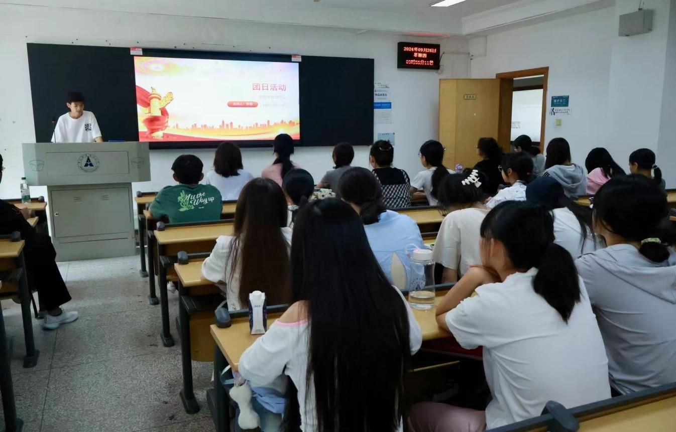 活动开始,团支部书记李萌首先介绍了团日活动的活动流程,并强调了新时代青年肩负的历史使命,鼓励同学们将个人理想与国家发展紧密结合,用实际行动为祖国的繁荣富强贡献力量。团支书的讲话激发了在场每一位同学的热情,掌声经久不息。