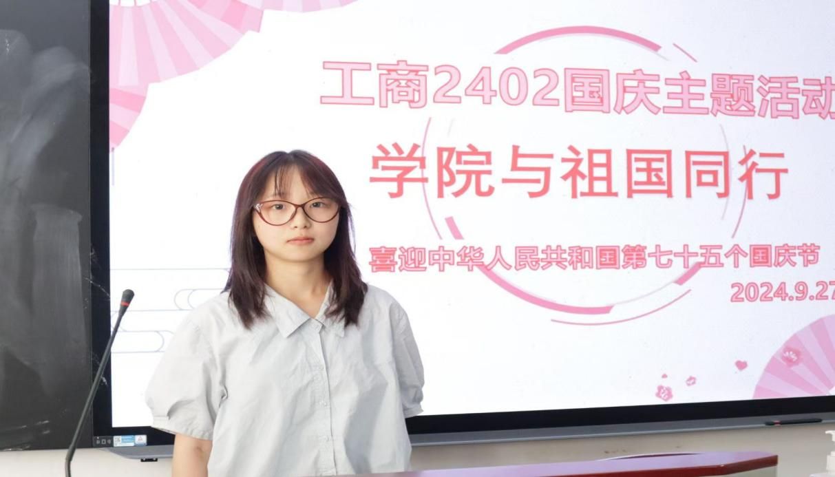 此次“学院与祖国同行”主题活动,持续了几个小时,在同学们的欢声笑语中落下了帷幕。这次活动不仅丰富了同学们的课余生活,更增强了班级凝聚力和同学们的爱国情怀。通过合唱校歌、红歌猜歌名、手写祝福和简笔画展示等环节,同学们更加深刻地认识到了学院与祖国的紧密联系,也更加坚定了自己为学院和祖国的发展贡献力量的决心。相信在今后的学习和生活中,工商 2402 班的同学们将以更加饱满的热情和更加坚定的信念,努力学习,积极进取,为学院和祖国的美好未来而不懈奋斗。