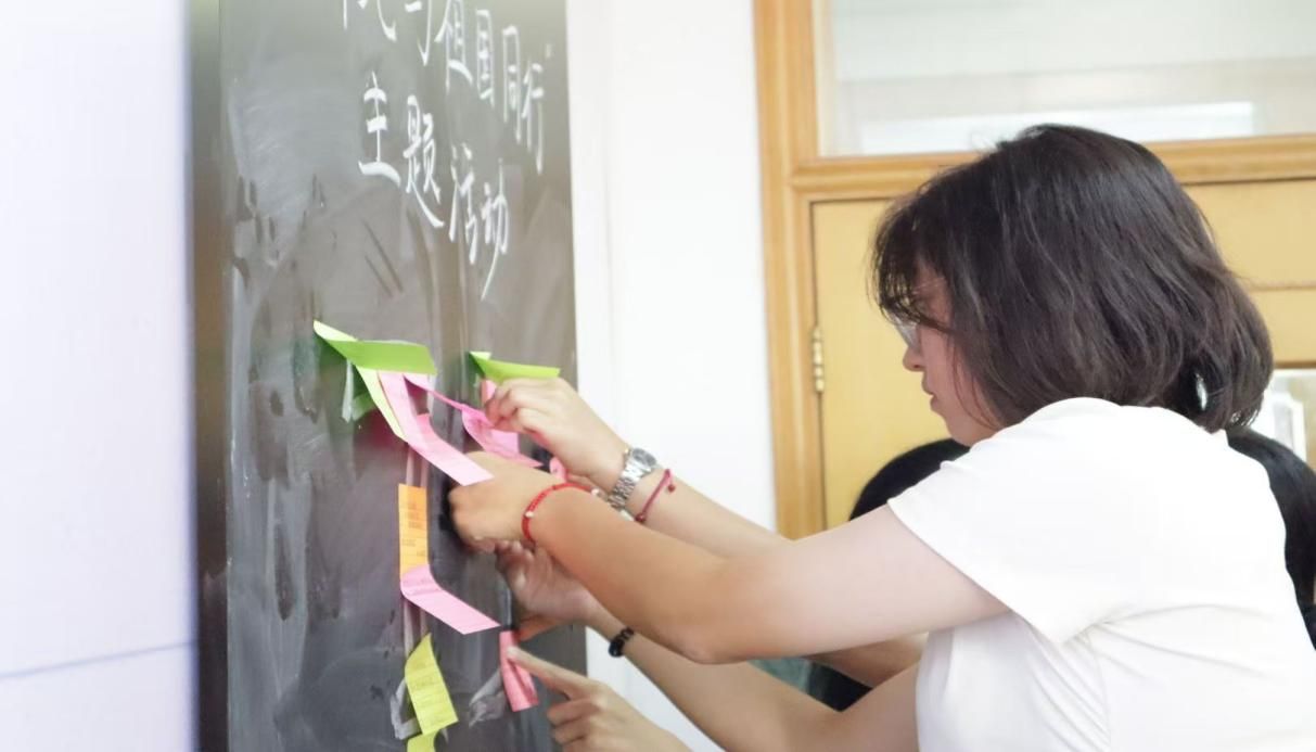 随后,手写祝福环节温馨而感人。同学们拿起笔,在纸上认真地写下对学院和祖国的真挚祝福。有的同学写下了对学院未来发展的美好期许,希望学院能够培养出更多优秀的人才,为国家的经济建设和社会发展做出更大的贡献;有的同学则表达了对祖国繁荣昌盛的衷心祝愿,愿祖国山河无恙,国泰民安。这些祝福承载着同学们的深情厚谊,也展现了他们的责任与担当。每一个字都是同学们内心最真实的表达,每一句话都是同学们对学院和祖国的深深眷恋。同学们写下的祝福便条被一张张粘贴在黑板上,组成“75”的字样,蕴含着对新中国成立75周年的深深祝愿。