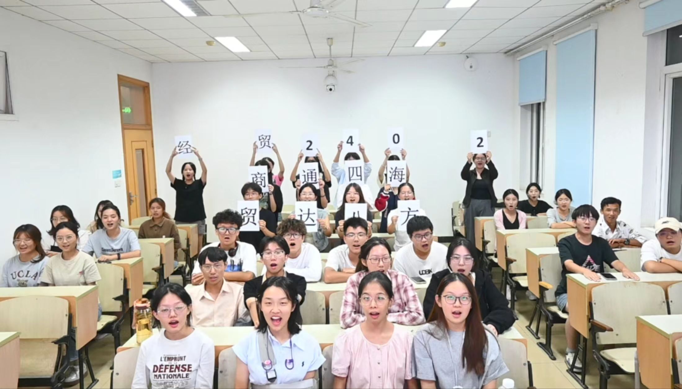 最后,全体同学齐声合唱《歌唱祖国》,激昂的歌声在教室里回荡,将现场气氛推向高潮。正如习近平总书记所说:“青年一代有理想、有本领、有担当,科技就有前途,创新就有希望。”经贸 2402 班的同学们用歌声表达了对祖国的热爱和对未来的憧憬。