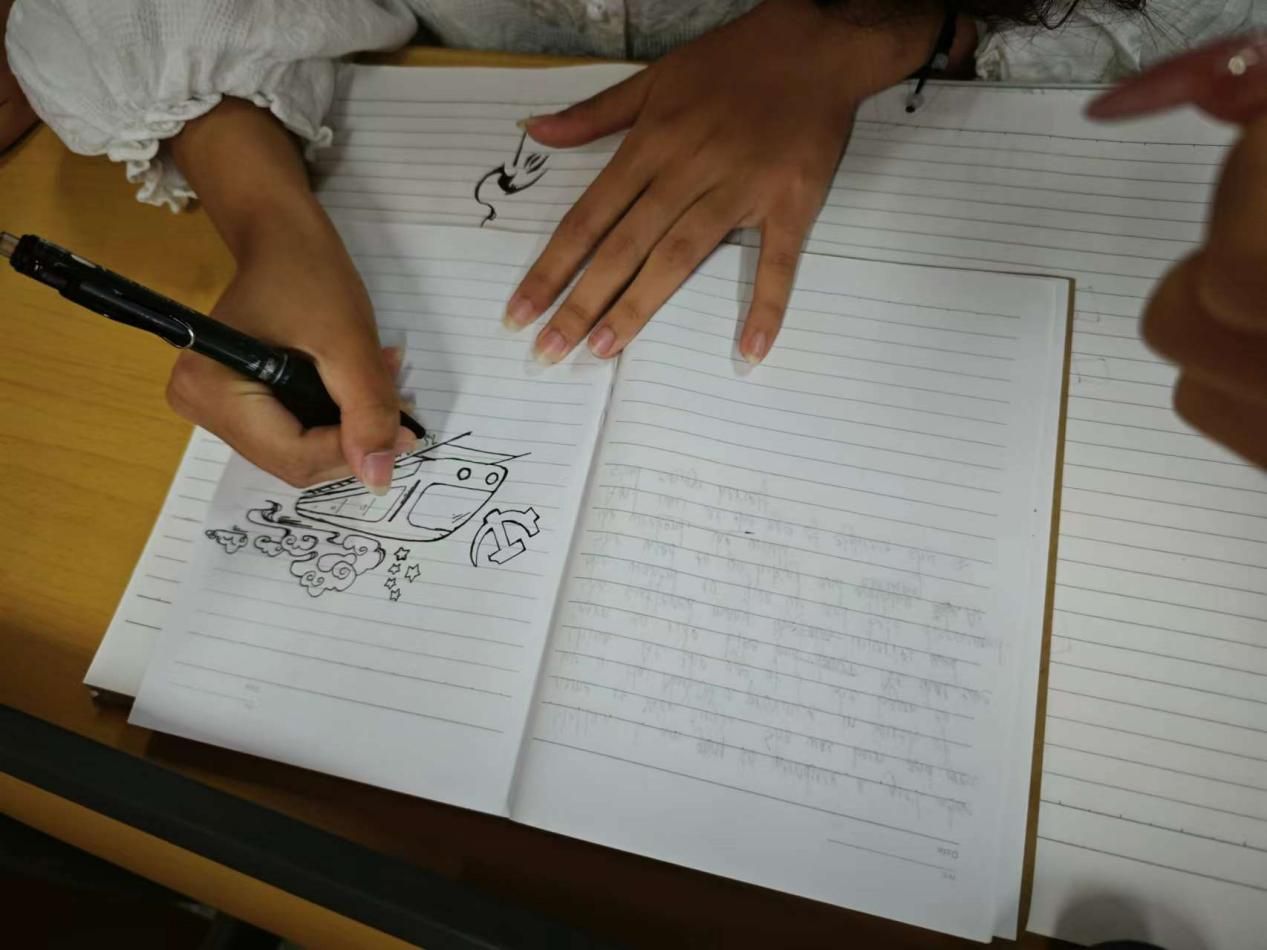 其次,青春风采多维度展现,同学们充分发挥青年天马行空的想象力,以简笔画的形式,展现近几年来我国在各个领域的发展与成就,例如绿色发展、文化发展等,表达自己对祖国母亲的热烈祝福与诚挚热爱。然后,回望祖国发展历程,在这项活动中,两位主持人带领所有同学,一同回望了伟大祖国的发展历程。通过这项活动,同学们加深了对祖国的认识、激发了同学们的爱国情怀,也鼓励同学们从历史中汲取珍贵经验并加以运用到生活和学习中。