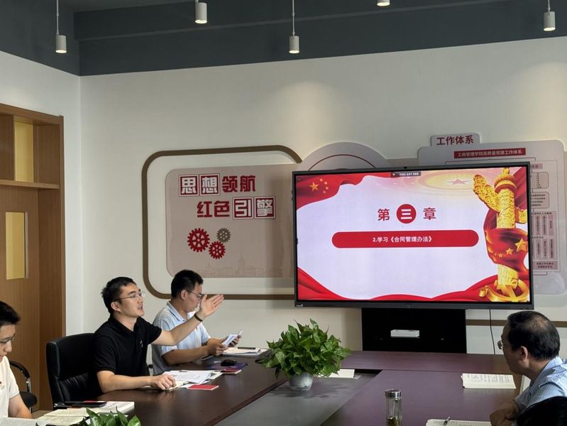随后,全体党员围绕习近平总书记最新重要讲话精神深入开展集中学习。行政党支部书记曾紫荣同志带领全体党员开展党建业务融合专题培训,深入学习了解了《合同管理办法》,系统讲解了会议室借用办法,行政党支部各个科室均委派了一名代表在会后进行实操学习。