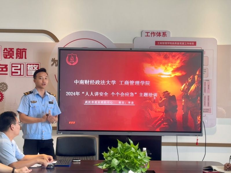首先,武汉市进安消防中心的教官李进对全体党员同志开展了“人人讲安全,个个会应急”的消防安全培训。李教官通过一系列真实生动的火灾案例,强调要坚持“人民至上、生命至上”的原则,把“安全第一,预防为主”落到实处,从责任体系建设、安全意识提升、安全隐患排查等多个方面为大家进行了讲授,进一步筑牢校园安全防线。