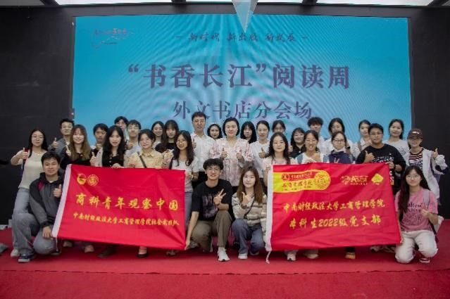行程的最后一站,同学们来到了湖北省外文书店。在门店经理的热情招待的招待下,大家了解到湖北省外文书店整栋楼的外立面以“山外有山”为主题,以蓝色为主基调,山与海的融合寓意着外文书店是中外文化互鉴的平台。设计师在建筑体的中央加建倒锥形的玻璃幕墙中庭,形成“V型光锥”,寓意书店是城市之光、知识之光。同学们深入每一楼层,切身体验“图书+”、“文化+”等多种新兴业态。外文书店不仅仅是书店,更是个文化文创生活和美学综合体。