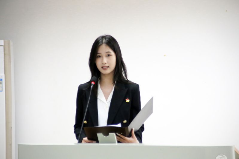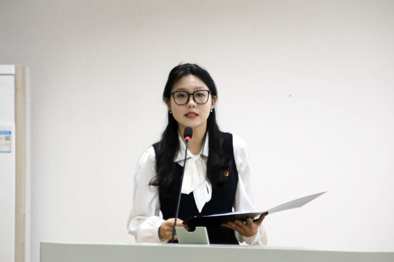 随后,志愿者协会新媒体创意部副部长李周熹介绍了志愿者协会的结构架构、工作内容及成果,鼓励商科青年赓续中南大红色精神,以实际行动践行公益理念,用炽诚爱心编织人间温暖。