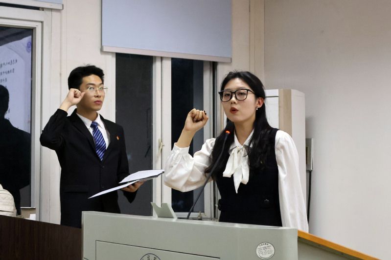 学生会主席团成员沈鑫儿,团校培训班第十七期学员代表董云天、第十八期新学员代表易欣蓝先后发言。沈鑫儿述说了对于团学工作的回顾和展望,并表达了对团学志未来的无限期盼。董云天以自己的成长经历激励同学们不断提升自我能力,为建设中南大青春工商矢志奋斗。易欣蓝则号召全体团学志新成员们坚定理想信念,积极进取作为,描绘梦想蓝图。