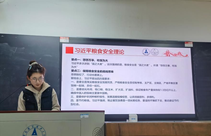 第三个环节,“厉行勤俭节约,筑牢粮食安全”,同学们在何子嫣同学的带领下进行粮食安全教育,明确节约粮食是每个个体的责任。