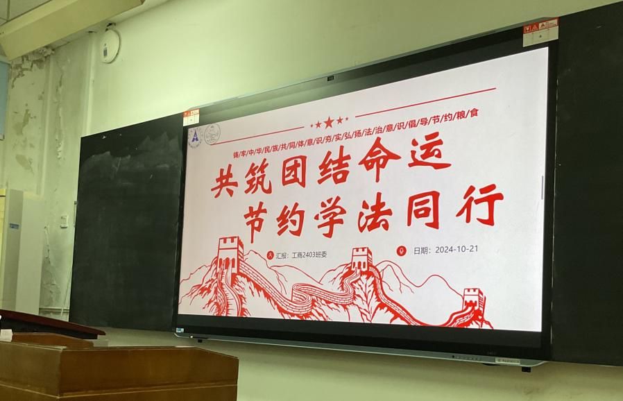 (通讯员邱诗妍)2024年10月21日,工商2403班在文泽楼104教室成功举办以“共筑团结命运,节约学法同行”为主题的团日活动。活动不仅展现了青年学子的蓬勃朝气,也深刻体现了习近平总书记关于青年成长成才的重要论述。本场活动由汪英姝同学主持。