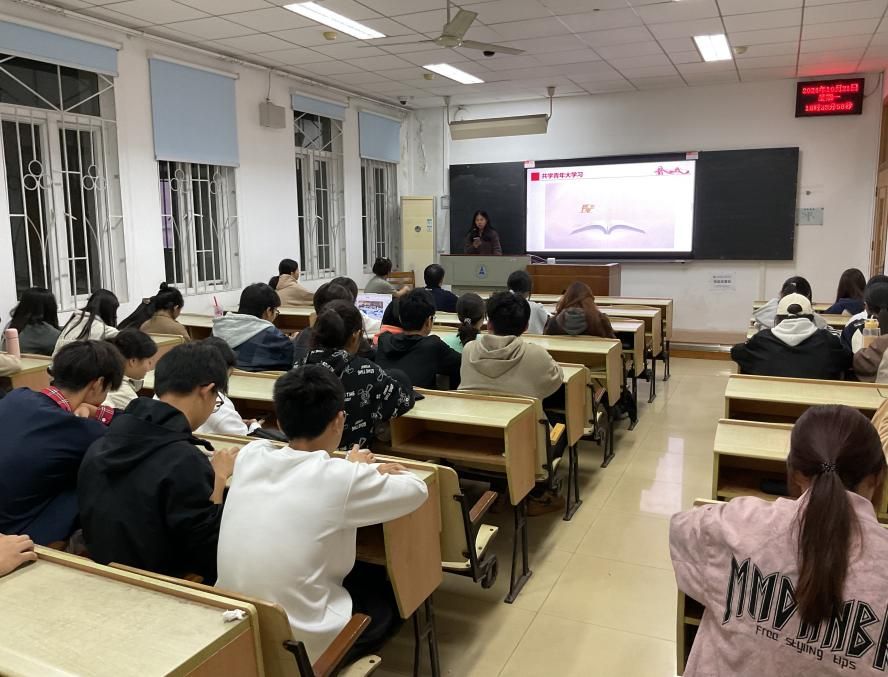 第一个环节,全体同学起立齐唱中国共青团团歌。接着大家一起观看最新一期“青年大学习”,并邀请到张嘉欣同学分享自己学习后的心得体悟。