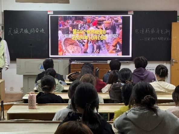 “跪尽胡雕饭,月光明素盘。令人惭漂母,三谢不得餐。”中华民族是自古以来以农业文明为中心,信奉“民以食为天”的规则,以勤劳节俭为荣,以浪费奢靡为耻,而在现代社会,粮食安全更是为整个国家经济发展奠定基础,促进经济稳定发展,满足民生基本保障。陈恩之同学就粮食安全主题播放视频,提升同学的节约意识。