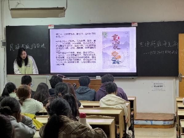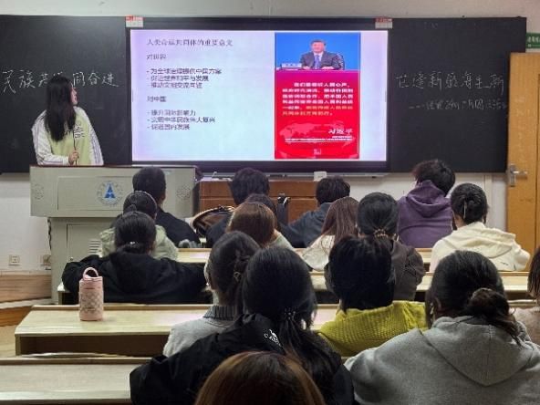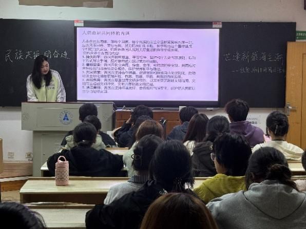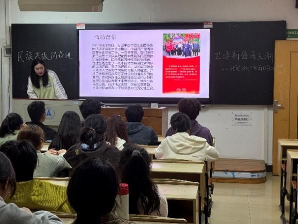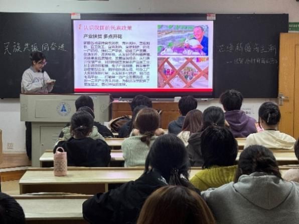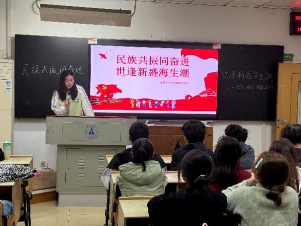 “五十六族兄弟情,携手共进谱新篇。”维吾尔族艾迪娅同学开展了主题为“维护团结统一,共话民族同心圆”的演讲,深入介绍了中国共产党相关民族政策,强调了民族平等、民族团结和各民族共同繁荣这一中国共产党处理民族问题时的基本原则。各位同学在聆听中感受到了各民族兄弟姐妹之间的深厚情谊,加深对中华民族大家庭的认同。