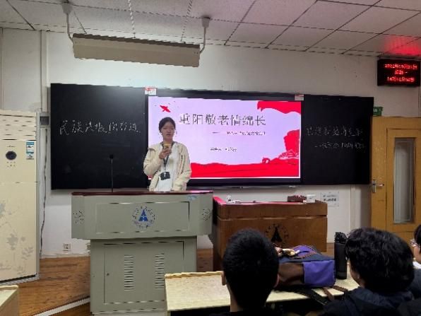 “重九开秋节,得一动宸仪。”恰逢双九重阳,正值敬老忆亲。由开展过相关敬老志愿服务的张艺丹同学进行经验分享,“爱心传递,温暖夕阳”,就活动前期准备、活动实施过程展开讲解的同时,也分享心路历程,以温情温暖人心,以贡献实现价值,明确青年人作为新时代栋梁的时代使命,修养品德与社会责任感。