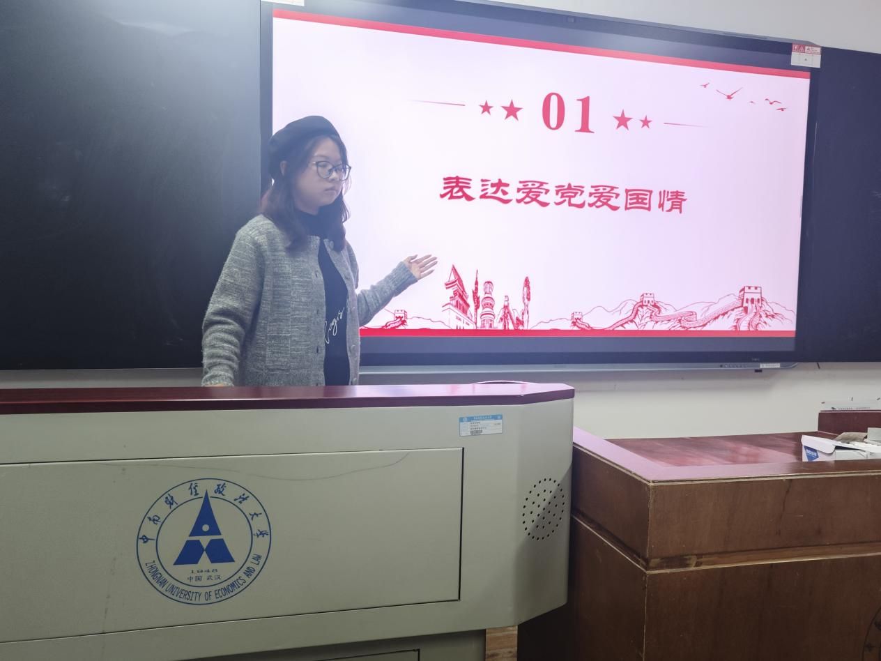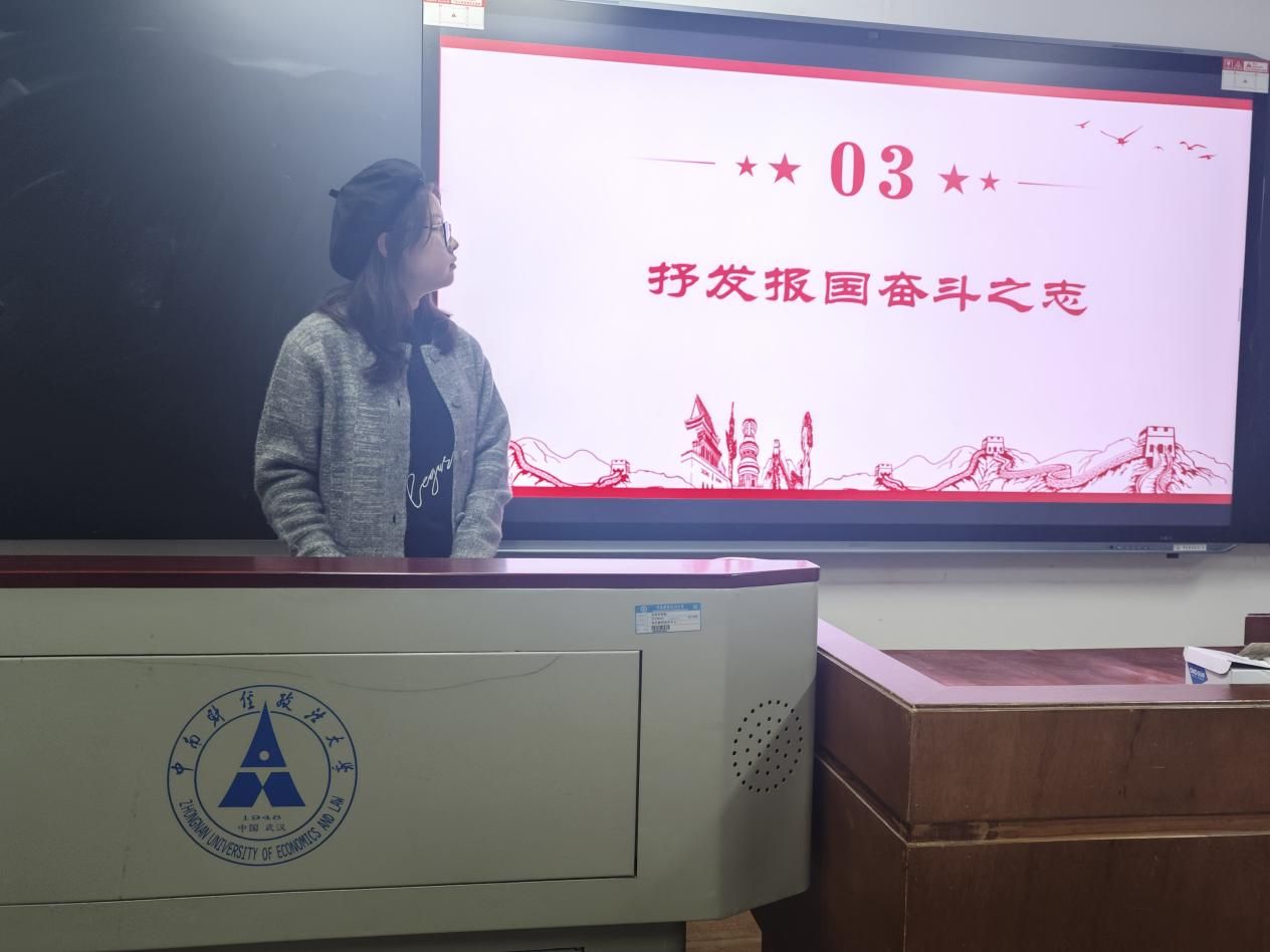 “红旗漫卷,山河如画。”恰逢祖国七十五岁华诞,经贸2402班团支书宋润田同学先带领大家重温历史,感受祖国艰辛复兴之路,带领我们体会到幸福生活来之不易,增强同学们对祖国的认同感。