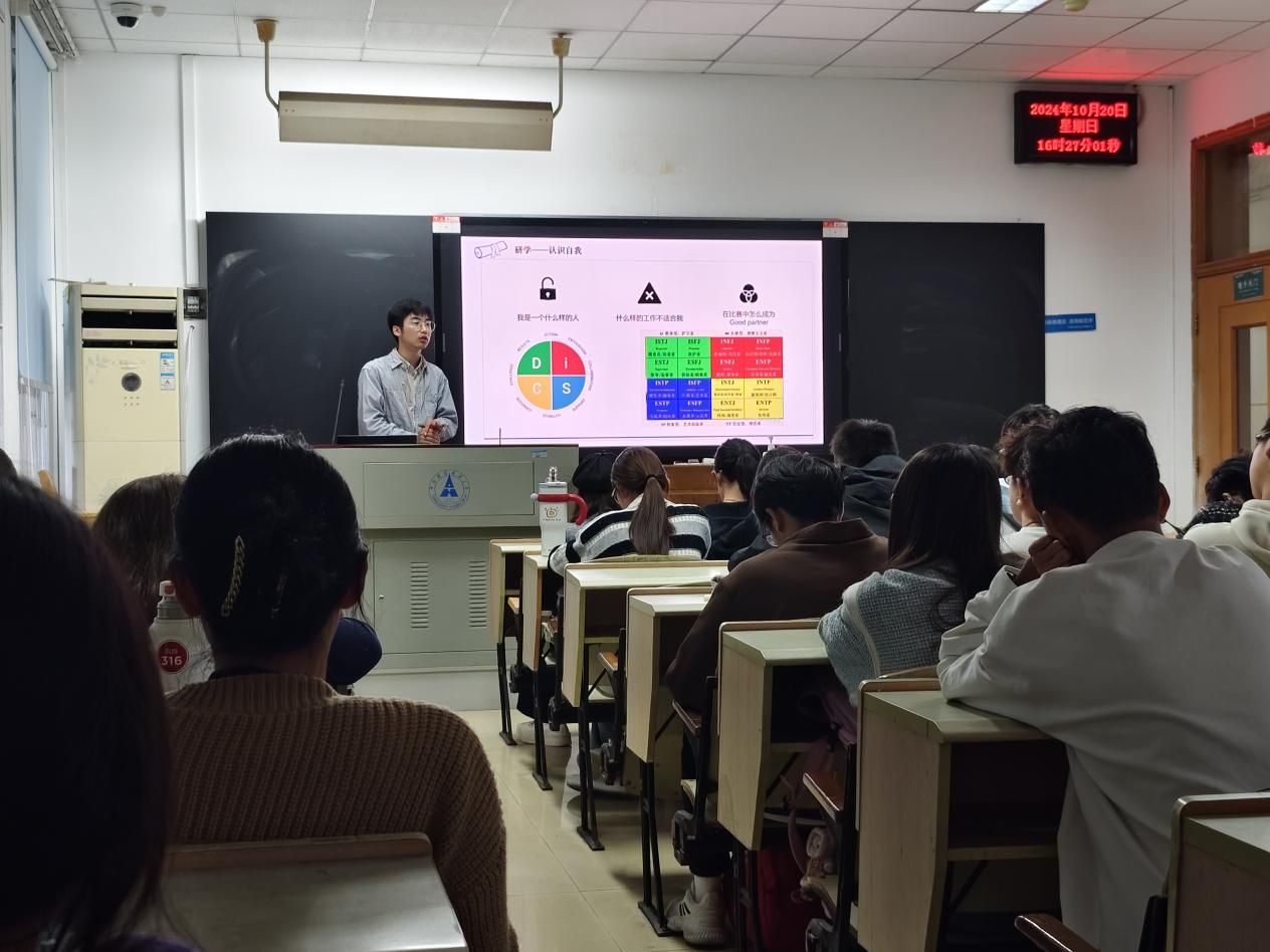 活动开场,经贸2402班辅导员助理王泽宇同学围绕着近期同学们提出的关于“博文杯”“大创”的相关问题,向同学们答疑解惑,分享比赛和科研的相关经验,对同学们的竞赛准备工作进行指导。