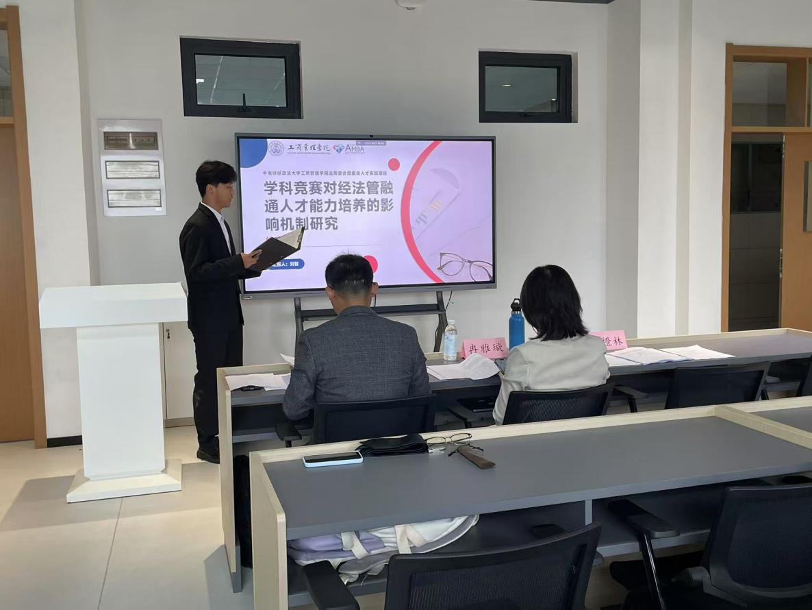 首先进行答辩的是法商项目《学科竞赛对经法管融通人才能力培养的影响机制研究》,项目答辩代表刘智同学作结题报告。