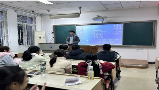 在经济建设取得巨大成就的同时,祖国在文化、教育、科技、体育等各个领域也百花齐放。团支书代鑫以一段《新中国的辉煌成就回顾》视频带领同学们感受过去的时光里,我们回忆了伟大祖国来之不易的硕果: 古老的中华文化在新时代焕发出新的活力,优秀的传统文化得到传承和弘扬,现代文化产业蓬勃发展;教育事业蒸蒸日上,为国家培养了大批高素质的人才;科技创新日新月异,5G 技术、人工智能、大数据等前沿科技引领世界潮流;体育健儿在国际赛场上奋勇拼搏,屡创佳绩,展现了中国人民的昂扬斗志和精神风貌。同学们心中的骄傲和自豪油然而生,为生于、长于新中国而感到幸福和欢喜,对祖国未来的发展更是渴望奉献上自己的力量,接过时代的火炬,让新中国在世界舞台上更加耀眼夺目。75 周年华诞,是对过去辉煌成就的总结,更是迈向新征程的起点。陆克同学上台分享表示:在这个特殊的时刻,我们要高举中国特色社会主义伟大旗帜,“不忘初心、牢记使命”,为实现中华民族伟大复兴的中国梦而努力奋斗。与此同时,代鑫同学也鼓励大家:我们也应该关注民族命运、国家命运和地球命运推动不同文明和谐共生,构建和谐世界,为构建人类命运共同体贡献力量。
