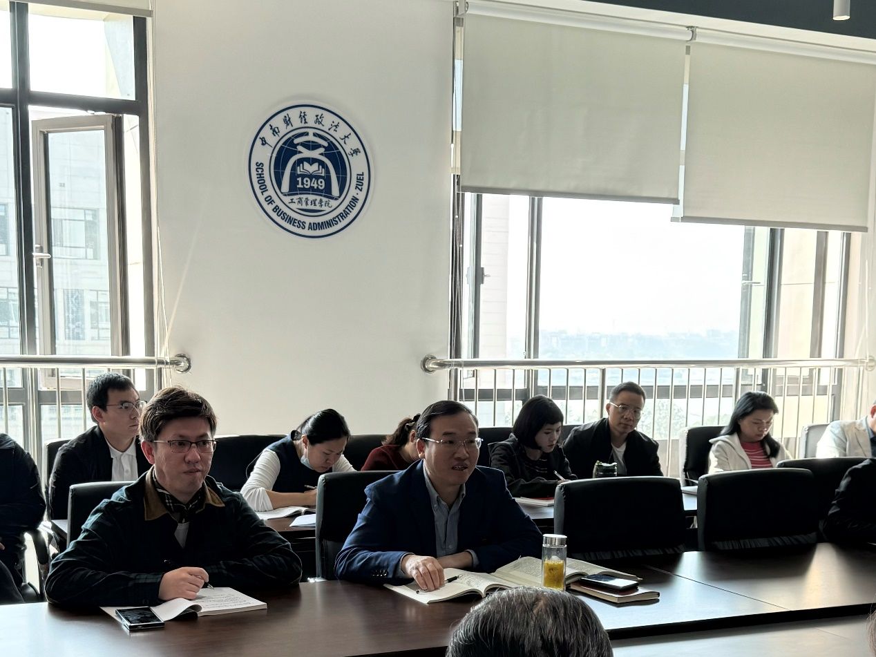 (通讯员潘俊颐)10月30日上午,工商管理学院行政党支部在文瀚楼北703会议室开展主题党日活动。活动以“坚定不移推动改革创新,为高质量发展增添动力”为主题,结合集体政治生日、业务交流分享、集中理论学习、工作作风研讨等形式开展。本次活动由第二党小组承办,第二党小组组长吴诗荣同志主持活动。