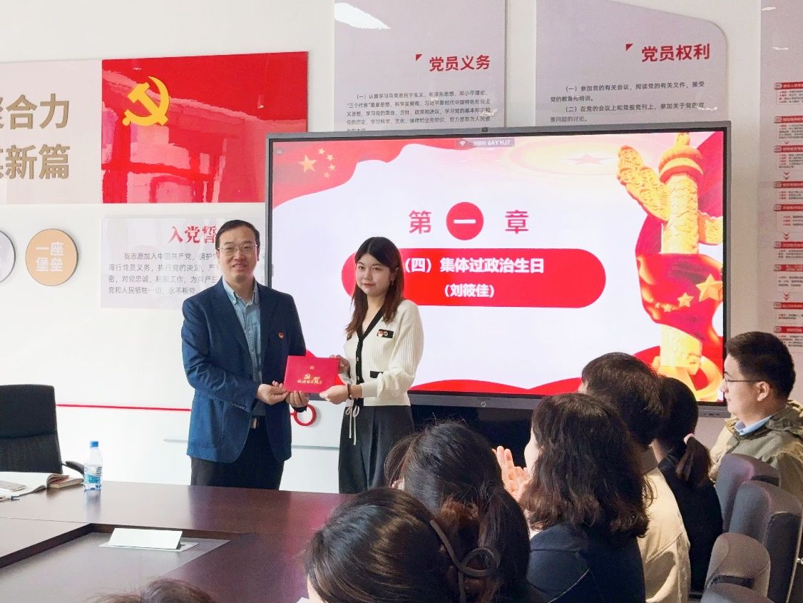 首先,行政党支部书记曾紫荣同志带领全体党员重温入党誓词,刘筱佳同志带领全体党员学习了《中国共产党章程》。会上,院党委书记余小朋为刘筱佳同志赠送政治生日贺卡,为她庆祝政治生日。