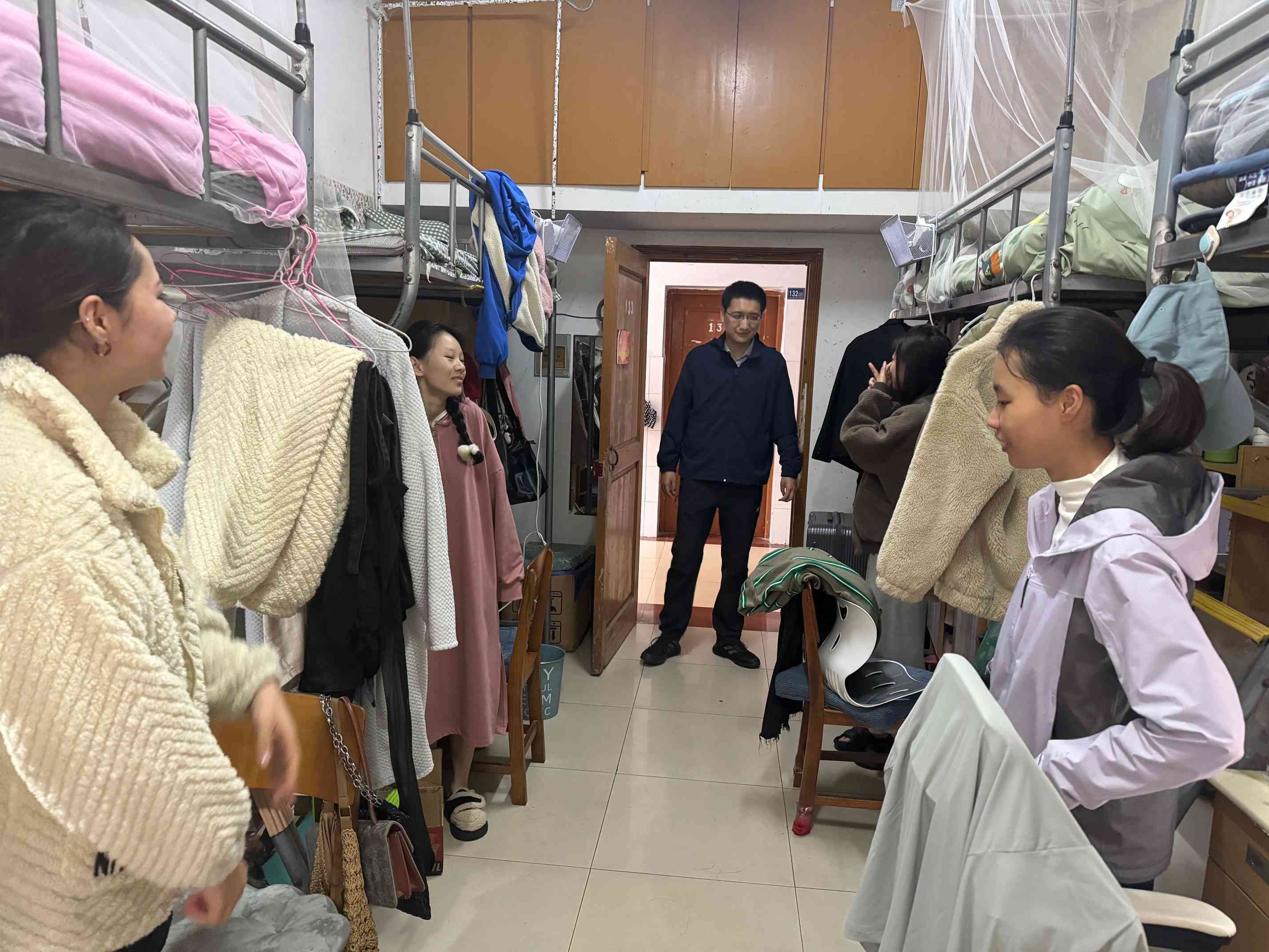 查寝过程中,老师们走访了多个宿舍,与同学们进行了亲切的交流。他们详细询问了同学们的学习、生活以及心理状态,鼓励大家要保持积极向上的心态,合理安排时间,确保身心健康。