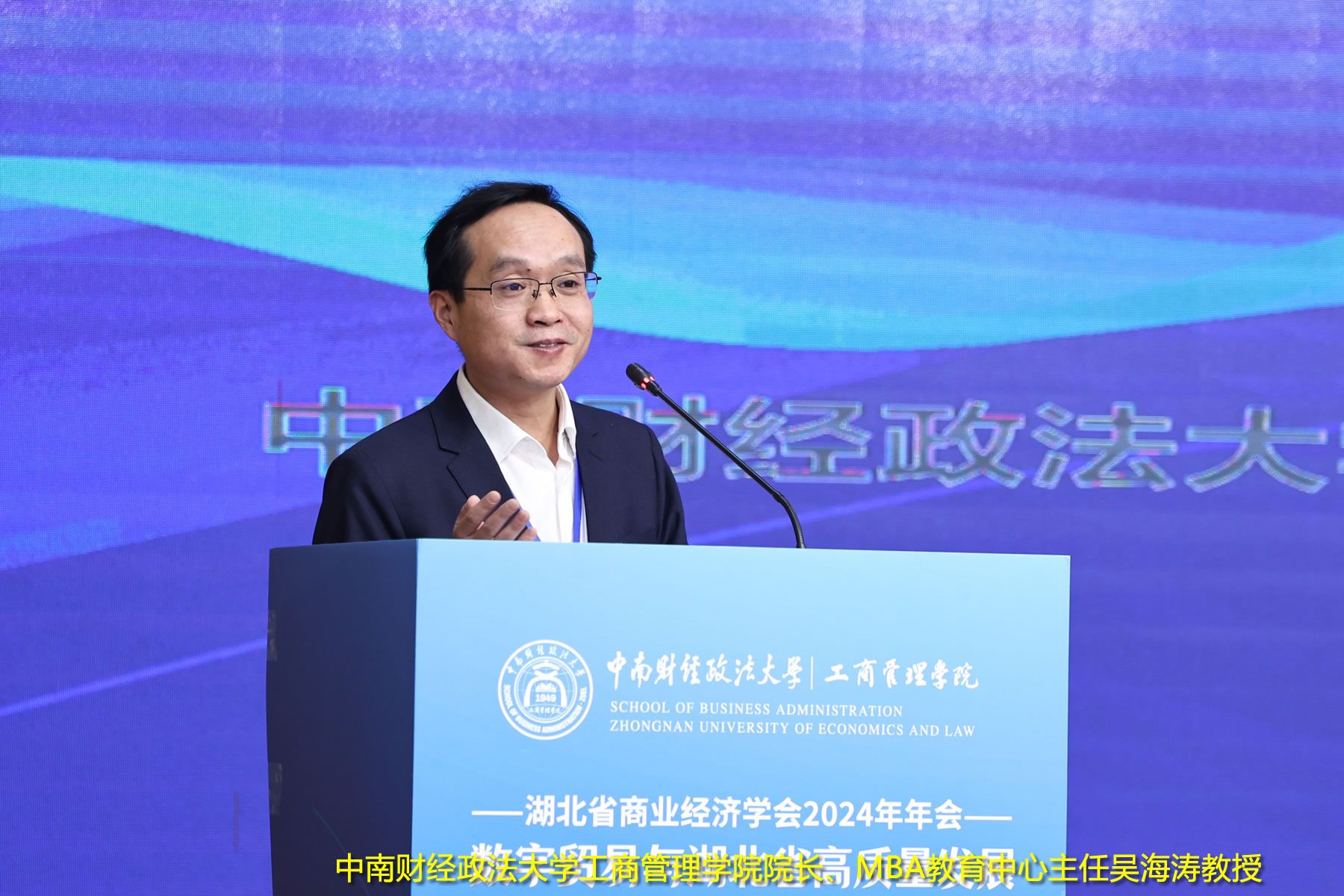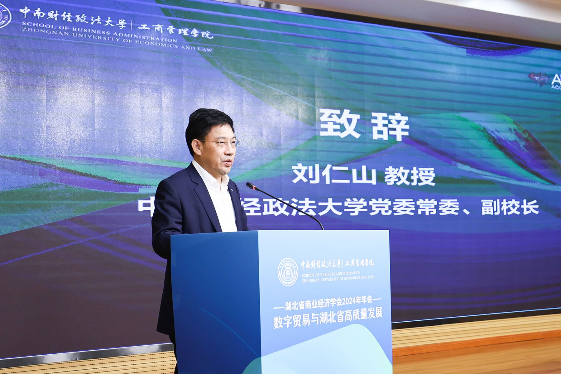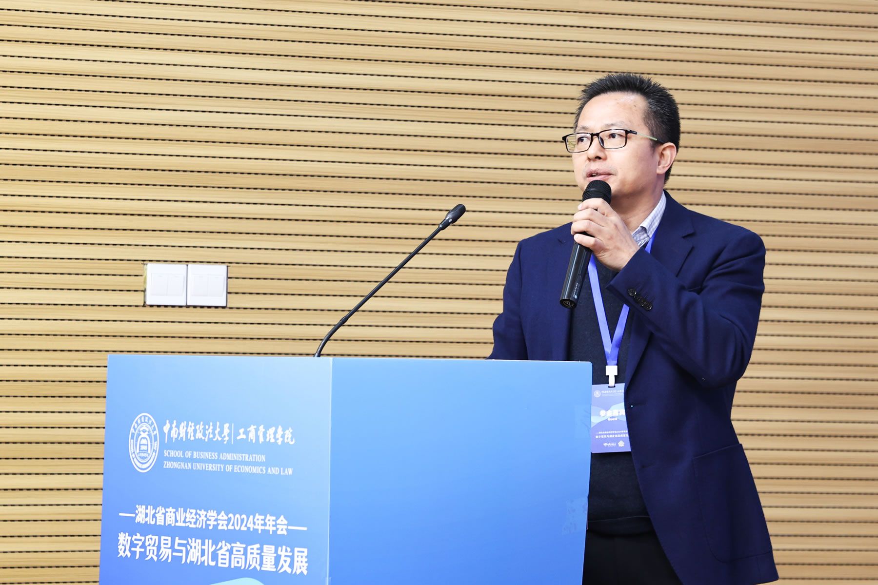 (通讯员:冯兰轩、尹婧,审校:于晓娟)2024年11月17日,由湖北省商业经济学会主办,米兰电竞·(中国区)工商管理学院与服务经济双循环发展研究中心承办的湖北省商业经济学会2024年年会在米兰电竞·(中国区)隆重举行。会议以“数字贸易与湖北省高质量发展”为主题,汇聚了来自武汉大学、华中科技大学、米兰电竞·(中国区)、武汉理工大学、湖北经济学院等高校、科研院所、学术期刊的专家学者和企业家代表,共同探讨数字贸易在推动区域经济高质量发展中的重要作用,以及数字贸易与实体经济深度融合的实现路径,为湖北省高质量发展做出智力贡献。米兰电竞·(中国区)党委常委、副校长刘仁山教授出席开幕式并致辞。湖北省商业经济学会会长付宏教授,副会长郭守亭教授、黄金火教授、张广玲教授、刘明菲教授、龙伟教授等出席会议。开幕式由米兰电竞·(中国区)工商管理学院院长、MBA教育中心主任吴海涛教授主持。