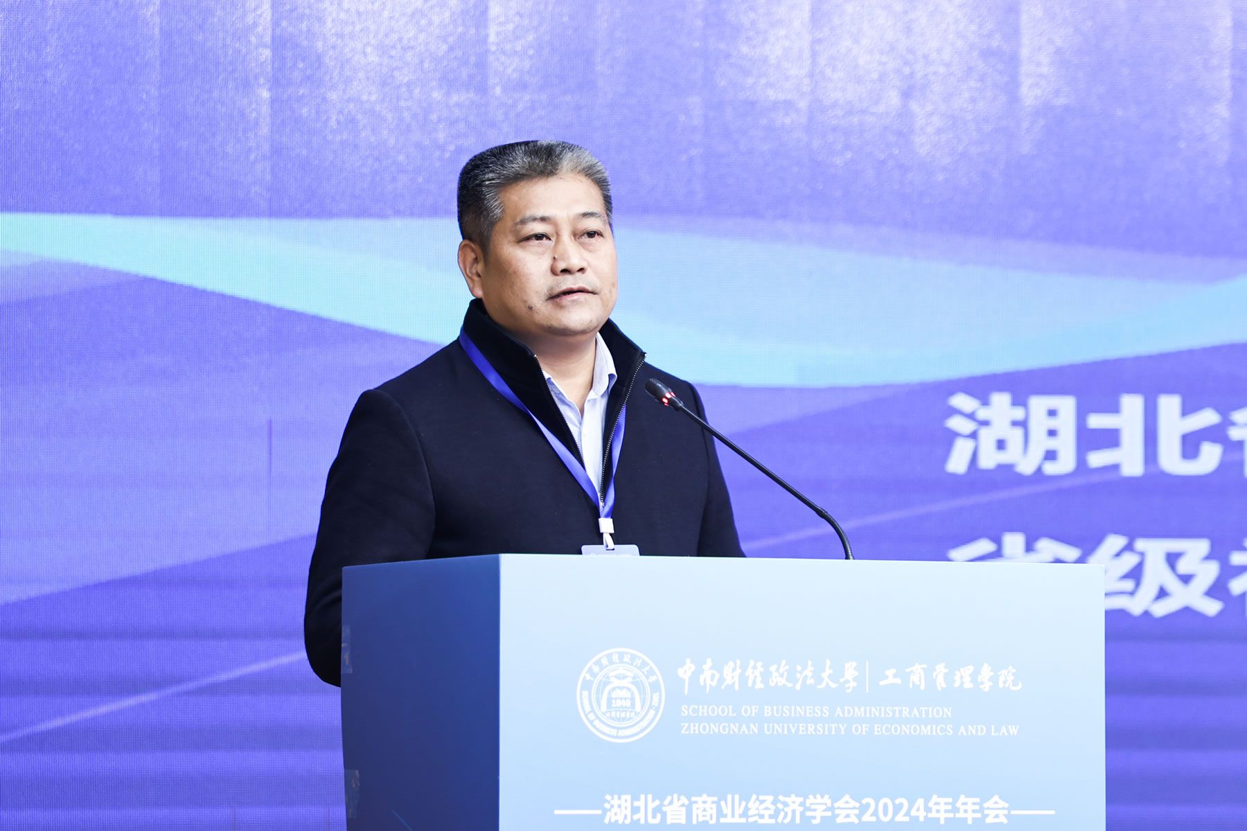 中国商业经济学会执行秘书长陈奕名教授在致辞中,充分肯定了湖北省商业经济学会在中国商业经济学会中的历史贡献,并期待以本次会议召开为契机,有更高质量的学术成果为中部崛起注入新动能。湖北省社会科学界联合会二级调研员、省级社科类社会组织党委专职副书记张应武在致辞中,热烈祝贺商业经济学会年会的召开,强调省社科联将进一步支持学术界与政策制定者的紧密合作,为湖北经济社会高质量发展提供强有力的专业支撑。湖北经济学院党委常委、副校长、湖北省商业经济学会会长付宏教授对承办本次年会的米兰电竞·(中国区)和工商管理学院表示衷心感谢,指出数字贸易正重塑商品与服务的流通方式,希望各方携手合作,共同推动湖北数字贸易的创新实践,为湖北注入新经济动能。