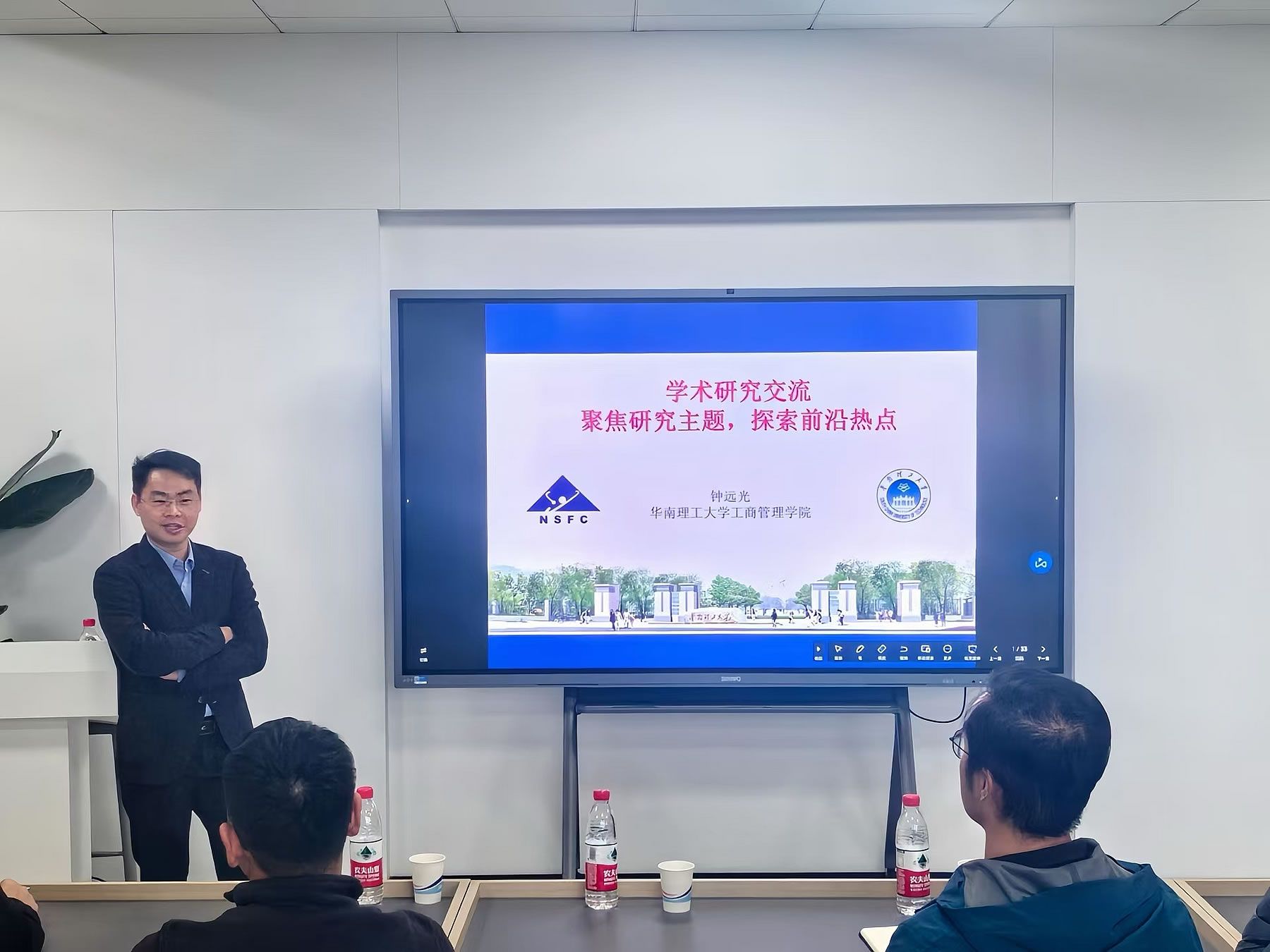 讲座第一项,余小朋书记隆重介绍了主讲嘉宾钟远光教授,并对钟远光教授的到来表示热烈欢迎。钟教授长期专注于供应链库存优化、库存共享与分配、优化理论方法与应用等领域的研究,其学术成果斐然,多篇代表性论文发表于MS、OR、MSOM、POM等国际权威期刊。此外,钟教授主持了国家杰出青年科学基金项目、国家自科面上项目和青年项目,并作为核心成员参与国家自科创新群体项目。此外,钟教授入选了国家级青年学者,且荣获教育部高等学校科学研究优秀成果三等奖等众多荣誉。并担任工业工程系主任、中国运筹学会行为运筹学与行为运营管理分会副理事长、广东省机械工程学会工业工程分会副理事长、管理科学与工程协会理事等多个重要职务。