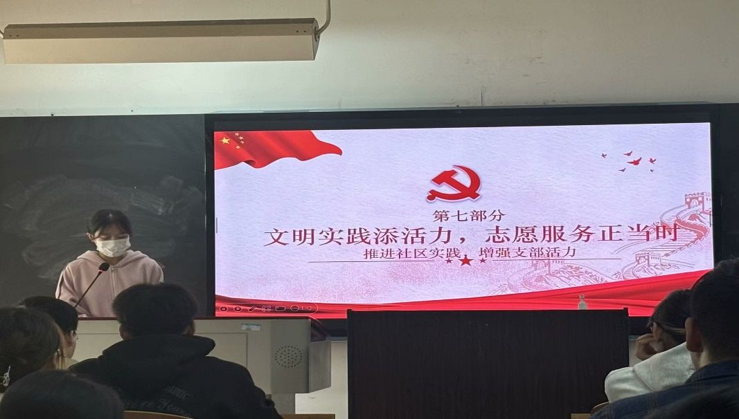 活动第七项,“文明实践添活力,志愿服务正当时”。志愿服务委员潘晓霞同学以自身经历向同学们分享志愿服务过程中发生的故事,阐述了参与志愿服务的意义。她以一部志愿者视角的短片引入,带领同学们初步认识志愿服务过程。随后介绍了学校的常态志愿者活动,分享了在活动过程中帮助一位老奶奶给亲人拨打视频的暖心故事。她表示,成为志愿者带给她的不只有社交能力的提升,更是自我价值的实现。最后,潘晓霞同学呼吁同学们积极参加志愿活动,共同铸造美好社会。