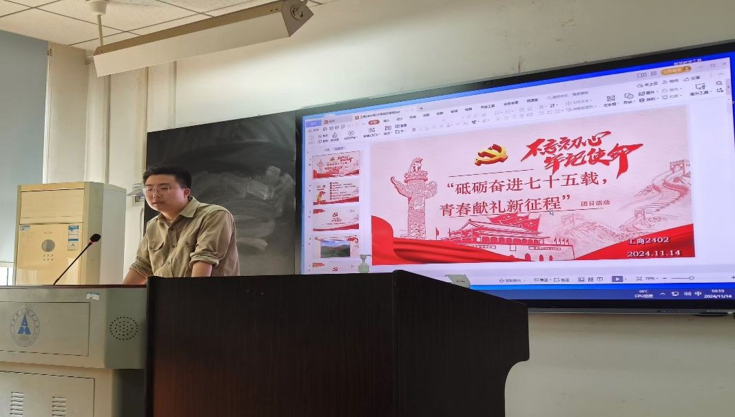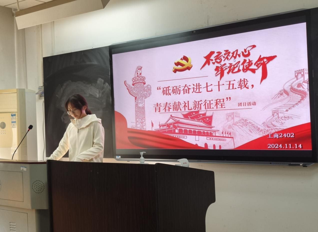 (通讯员 左璞熙 阳馨允)春华秋实,岁物丰成。为进一步学习习近平新时代中国特色社会主义思想,增强爱国情怀,11月14日上午10点,工商管理学院工商2402班全体同学齐聚首义校区文润楼205教室,共同开展了11月团日活动,会议邀请班级导师朱棣老师出席,杨天鑫同学担任本次会议的主持人。