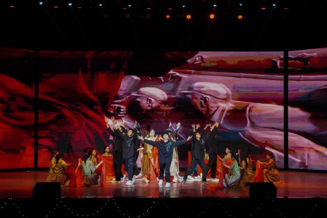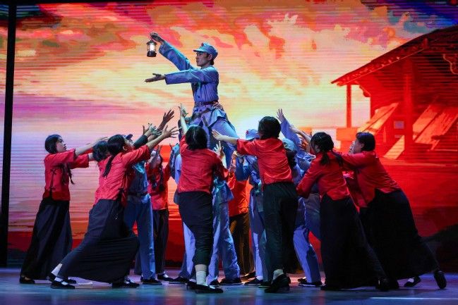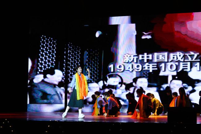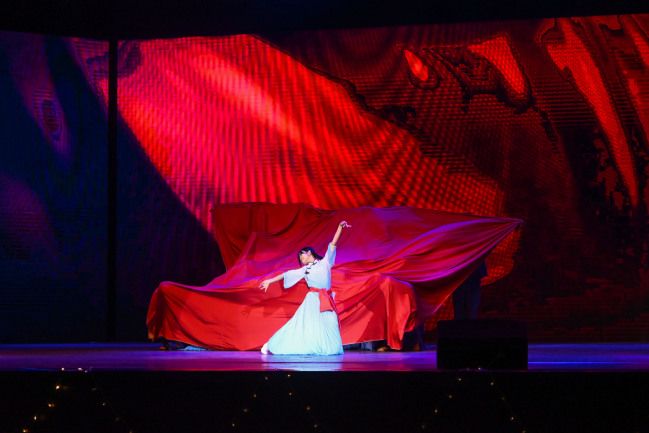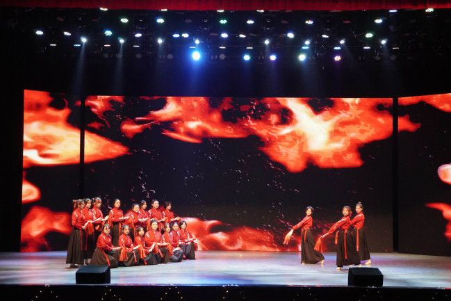 岁月长河轻抚岸,赤色忠魂耀星光。工商2403班呈现舞蹈《你好,新生》。舞者行云流水的身姿似那初升的太阳,炽热而坚毅。手中飘逸的红绸,映照着民族苦难与黎明曙光,生死存亡间尽显民族胆色。