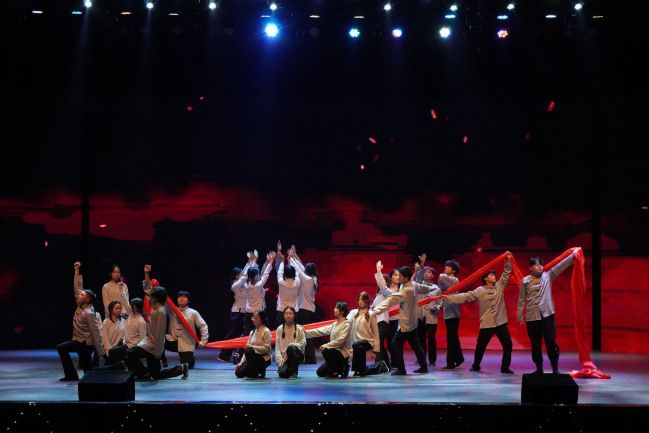 工商2401班带来舞蹈《赤胆红心》,那是回荡胸怀不冷却的刚毅不屈。以汗水为墨,以舞步为笔,他们生动描绘了那段峥嵘岁月。吾辈青年更应手捧一寸赤心,秉持崇高敬意,不忘始终,砥砺而行。