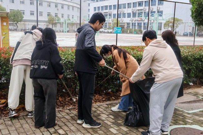 在各自劳动区域内,志愿者们分工合作,积极投入。尽管十一月底的都天气已经有些微冷,但志愿者们的热情丝毫不减,任劳任怨地认真打扫区域的每一个角落。经过一个多小时的的辛勤劳动,学校环境变得更加整洁宜人。