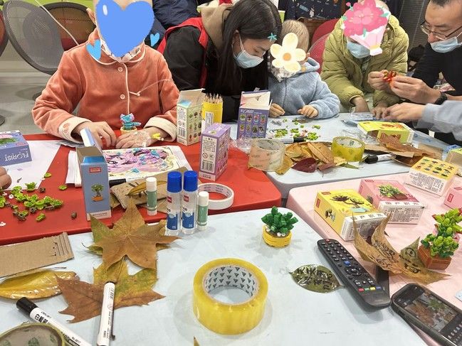 积木搭建绿林苑,画笔勾描心底景。植物的科普结束后,志愿者们组织患儿进行积木拼搭游戏。每当手中拿起那些五彩斑斓、形状各异的积木时,这一群充满创意与想象力的小小建筑师眼中便闪烁起兴奋与期待的光芒。他们兴致勃勃地构建着自己的心中世界,在他们的巧手下,一块块积木逐渐被拼成城堡、桥梁、车辆等各式各样的形状,每一个细节都展现着孩子们的奇思妙想。待积木拼搭完成后,患儿们又拿起了树叶和画笔。他们在树叶上画上可爱有趣的图案,并在志愿者和家人的帮助下,用透明胶带将树叶包裹起来制成标本,封存自然之美也保存他们的天真烂漫。一个小女孩在树叶上画了一家三口手牵手的样子,笑得眉眼弯弯:“我最喜欢和爸爸妈妈一起出去游玩啦!”孩子们的纯真如同晨露,让平凡的日常生活焕发光辉。