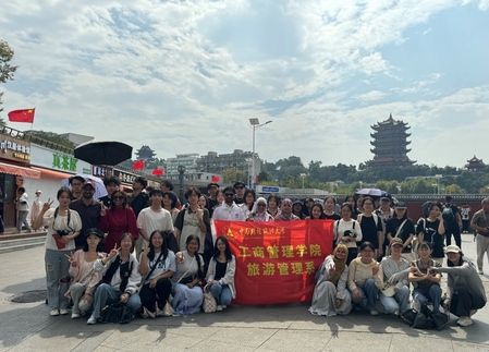 2024年10月12日,工商管理学院旅管2201班学生及国际教育学院的13名留学生,在周凌旭老师的带领下赴武昌区开展《旅游目的地管理(英语)》课程实践,进行了时长3.5小时、距离7.7千米的City Walk及双语交流活动,途经武汉长江大桥、户部巷、中共五大会址、黄鹤楼、粮道街、昙华林等众多蕴含武汉深厚历史文化的目的地,提高了旅游管理专业学生的专业素养与双语交流水平。