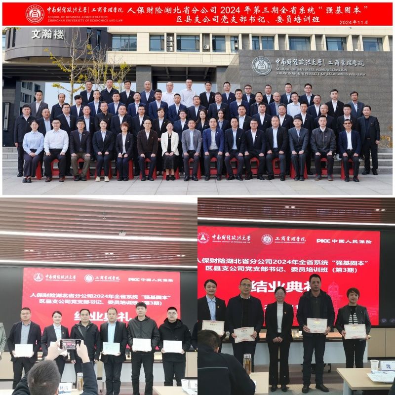 (通讯员 高洋)11月14日至20日,人保财险湖北省分公司2024年第三期全省系统“强基固本”区县支公司党支部书记、委员培训班在我校南湖校区成功举办。
